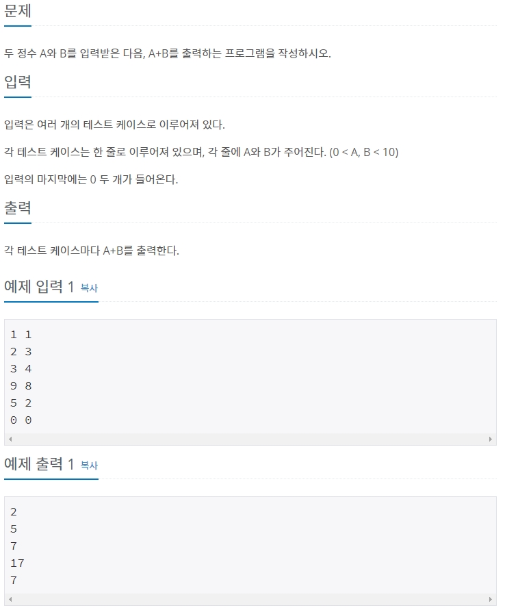 두 정수 A와 B를 입력받은 다음, A+B를 출력하는 프로그램을 작성하시오.