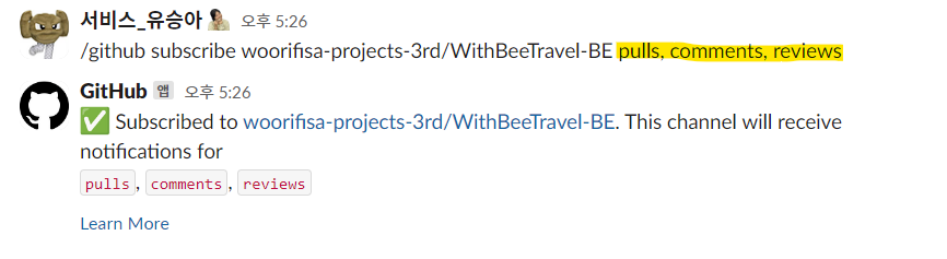 ๐ Slack ์ฑ๋์ GitHub Repository์ ํน์ ์ด๋ฒคํธ๋ง ๊ตฌ๋
