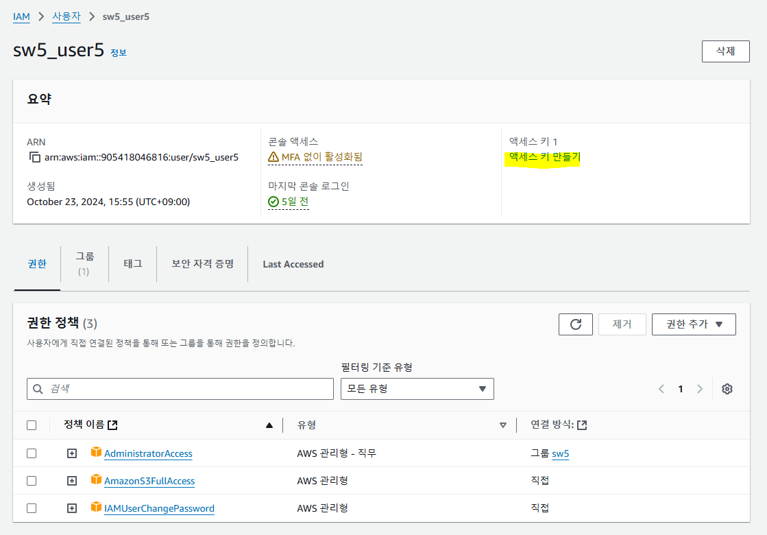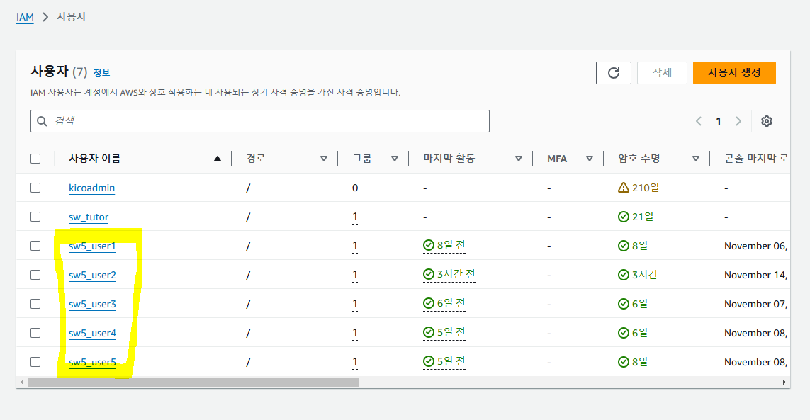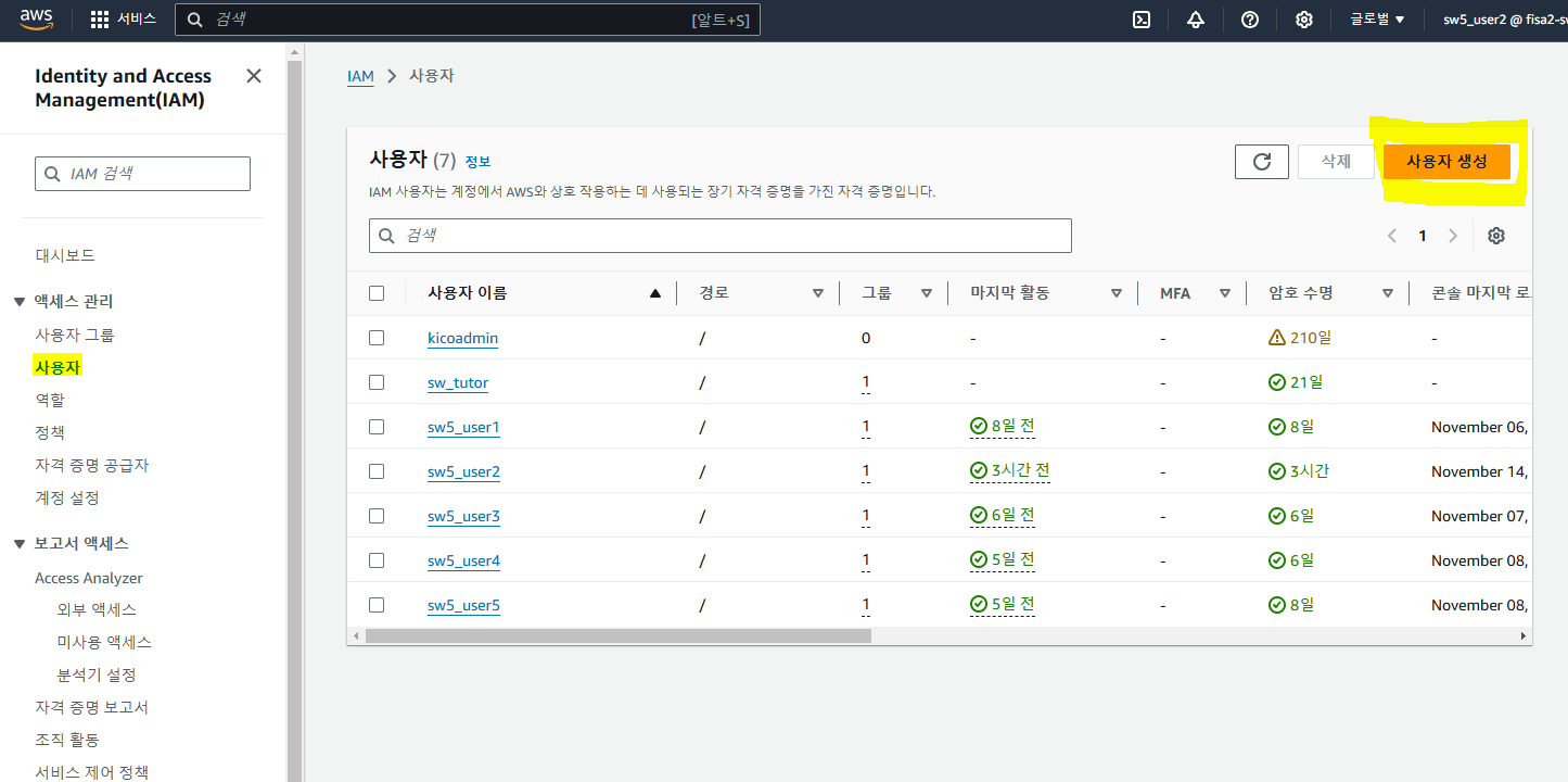 ์ฌ์ค ๋๋ ์ฐ๋ฆฌFIS ์์นด๋ฐ๋ฏธ์์ ์ ๊ณตํด์ค AWS ๊ณ์ ์ ์ฌ์ฉํ๊ณ ์๊ธฐ ๋๋ฌธ์ ์ด๋ฏธ IAM๊ฐ ์์๋ค.