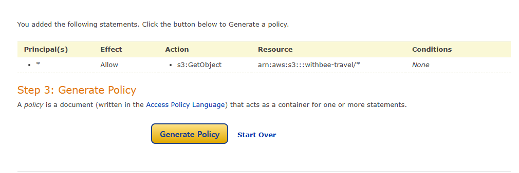 ์ ํ์ธ ํ, Generate Policy ํด๋ฆญ