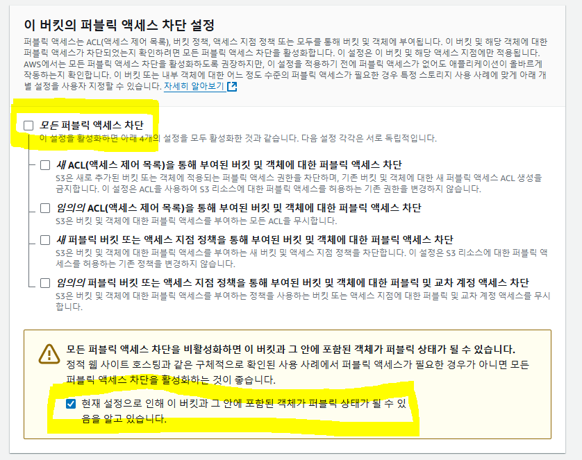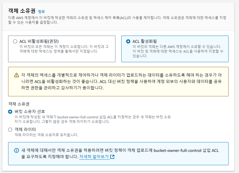 ํด๋น ์ฒ๋ฆฌ๋ฅผ ํ ๋ IAM ๊ณ์ ์ ์์ฑํ์ฌ ๋ฒํท์ ์ ๊ทผํ๊ธฐ ๋๋ฌธ์ ACL ํ์ฑํ๋ก ์ ํ์ค๋ค.