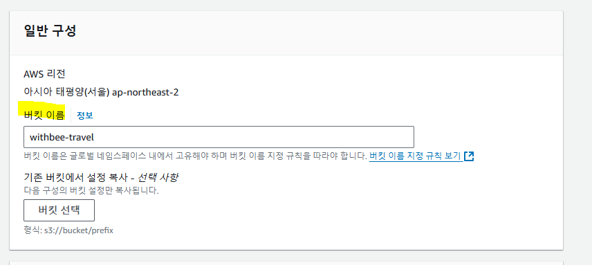 (๋๋ withbee-travel์ s3 ๋ฒํท๊ณผ ์ฐ๊ฒฐํ๋ค๋ ๋ป์ผ๋ก ํ๊ทธ๋ฅผ ์ ์ด์ฃผ์๋ค.)
