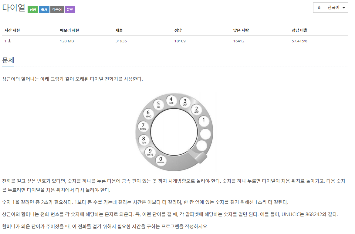 5622번: 다이얼