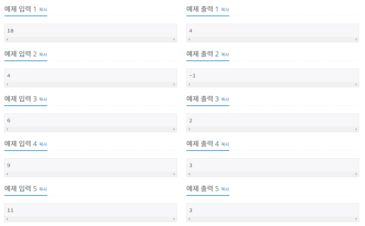 이럴 경우에는 -1을 출력해준다.