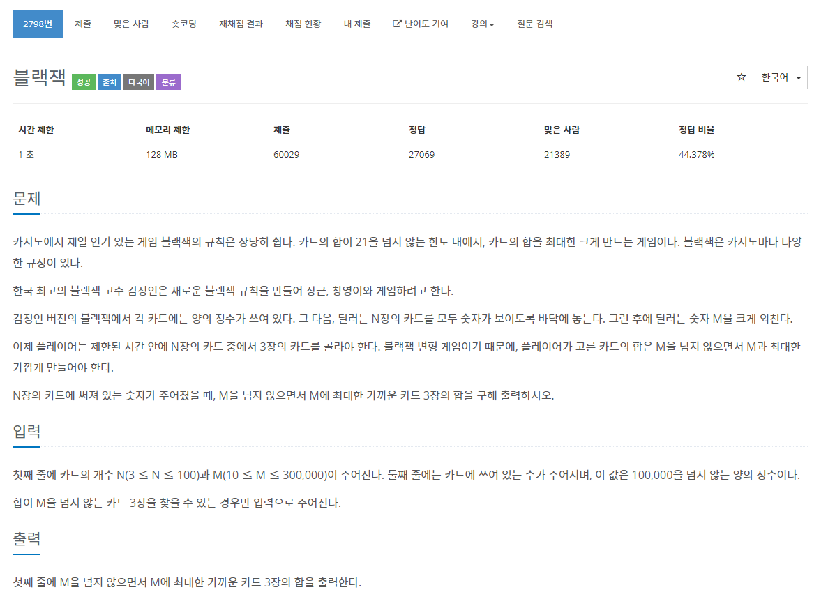 첫째 줄에 카드의 개수 N(3 ≤ N ≤ 100)과 M(10 ≤ M ≤ 300,000)이 주어진다. 둘째 줄에는 카드에 쓰여 있는 수가 주어지며, 이 값은 100,000을 넘지 않는 양의 정수이다. 합이 M을 넘지 않는 카드 3장