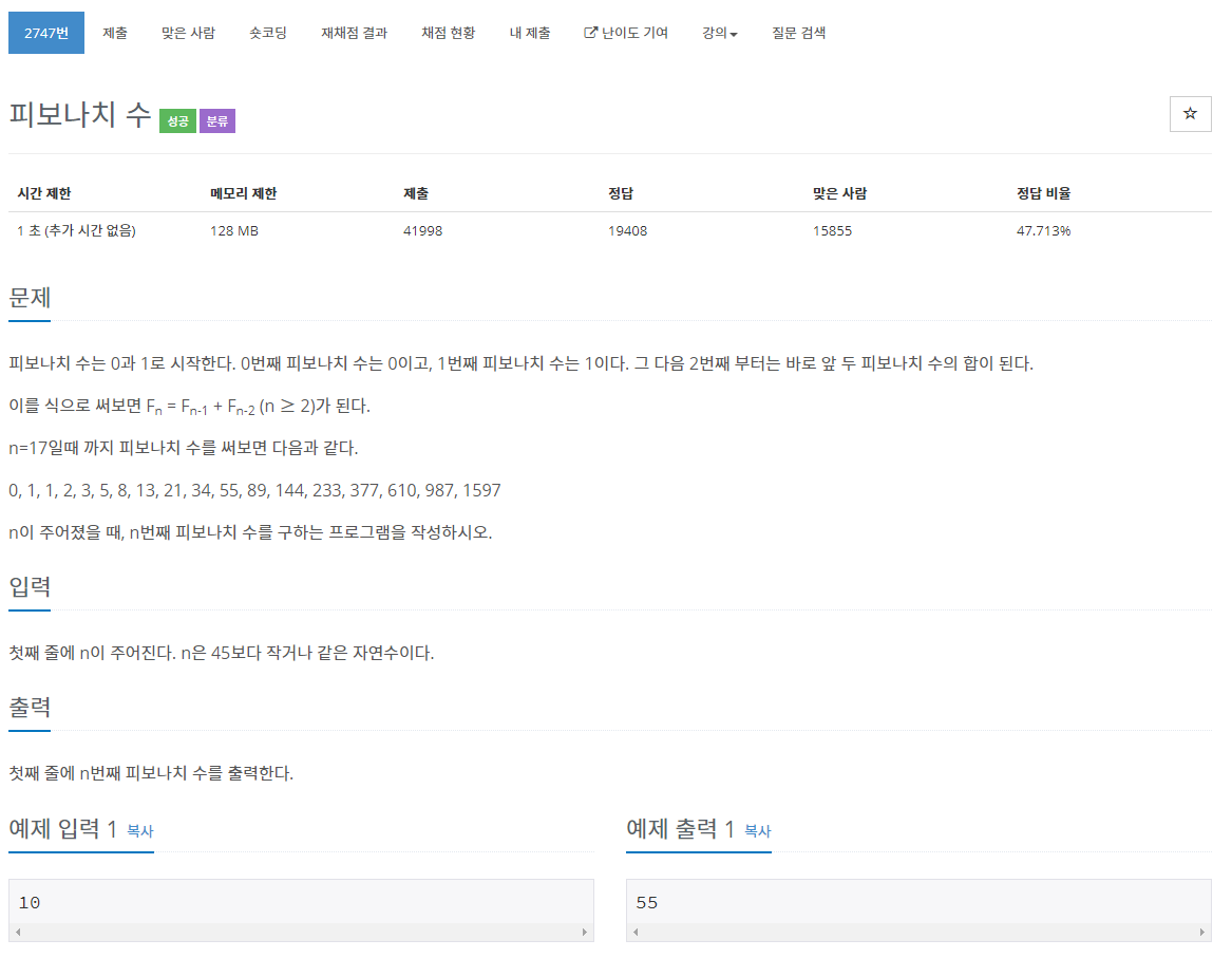 2747번: 피보나치 수