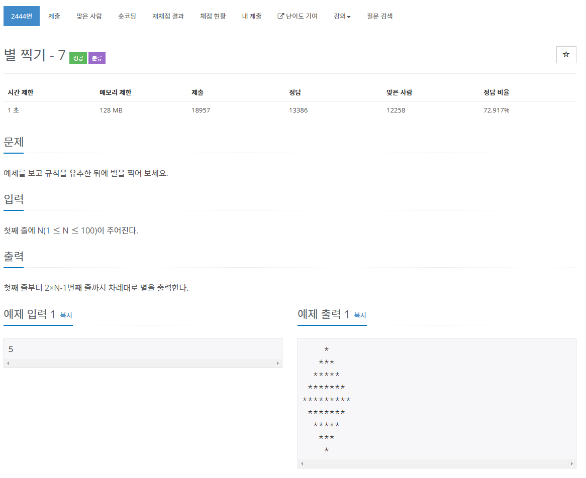 | [백준, BOJ 2443] 별 찍기 - 6 (python) (0) | 2021.05.10 |
