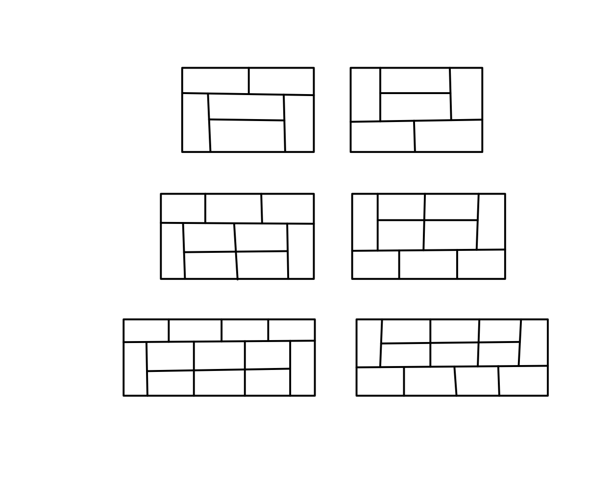3xn은 맨 아래나 맨 위에 1x2 타일이 꼭 붙어있어야 하므로 n은 반드시 2의 배수여야만 타일을 꽉 채울 수 있다.