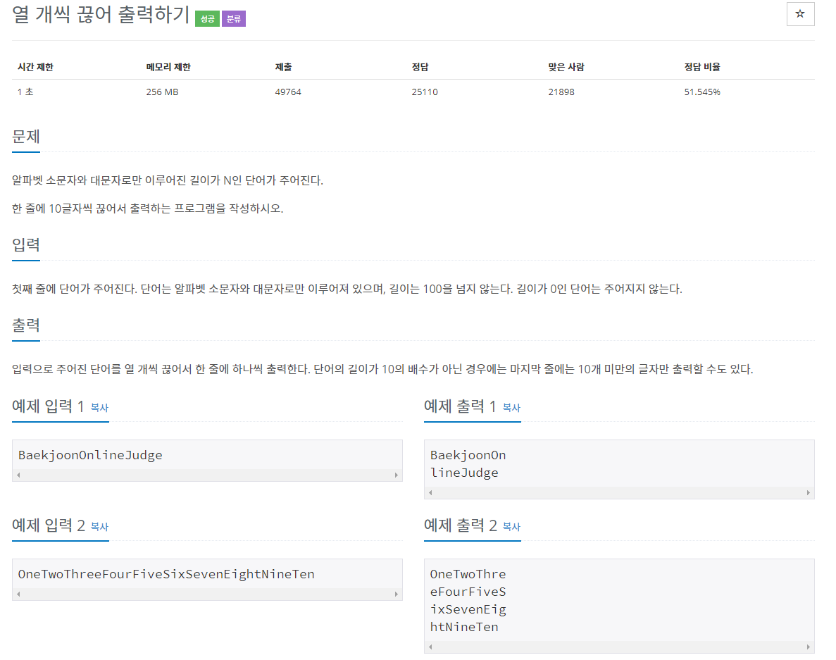 11721번: 열 개씩 끊어 출력하기