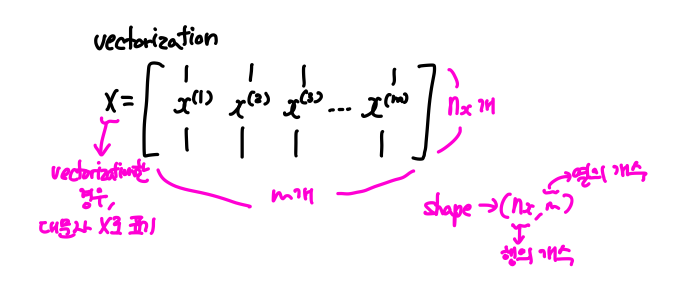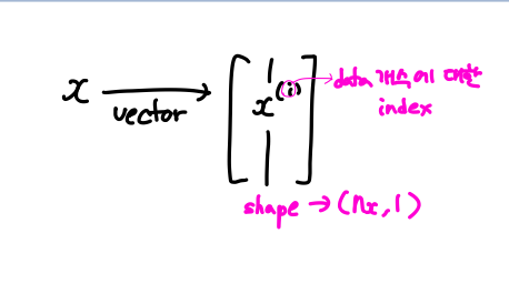 x= data 1개의 input = feature vector (feature 개수=$n_x$)