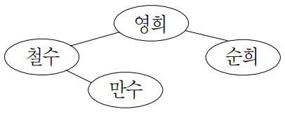 예를 들어, 철수와 영희, 철수와 만수, 영희와 순희가 서로 친구 관계라면 이를 표현하는 친구 관계 그래프는 다음과 같다.