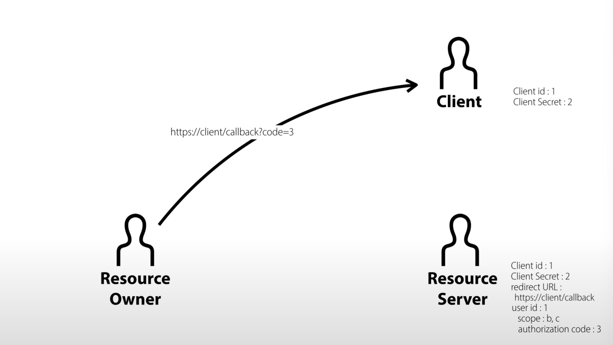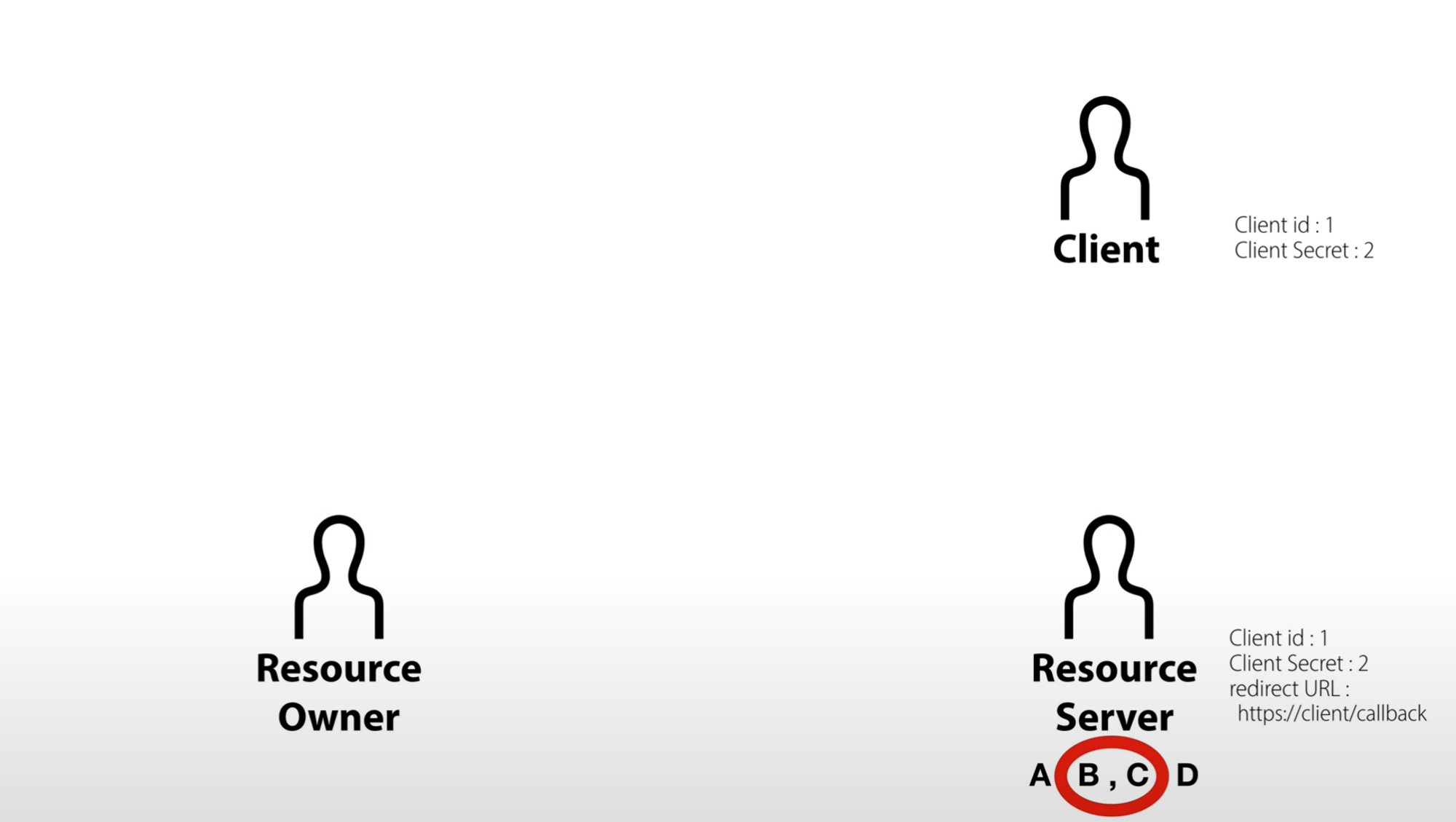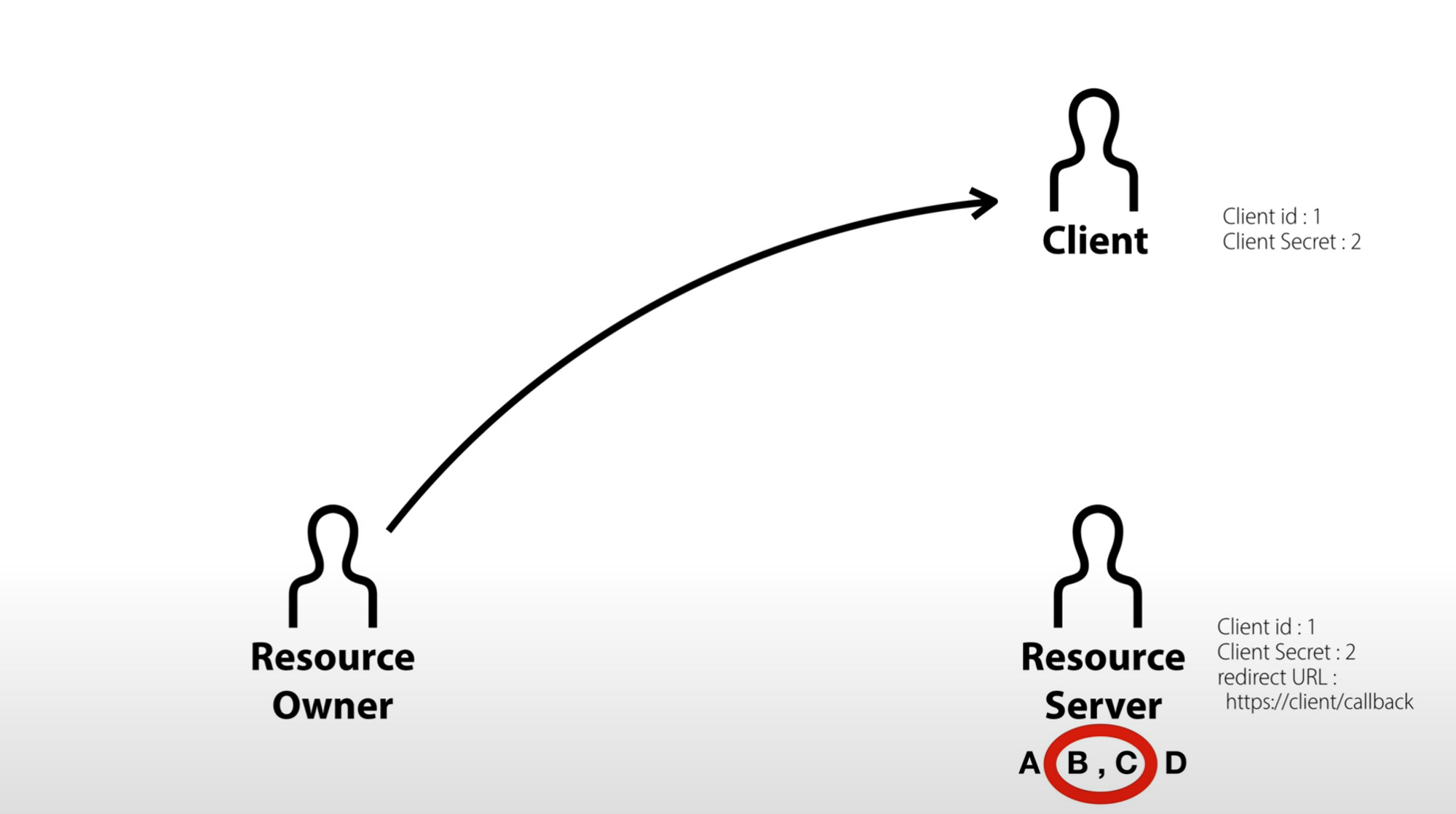 https://resource.server/?client_id=1&scope=B,C&redirect_uri=https://client/callback과 같은 링크를 만들어준다.