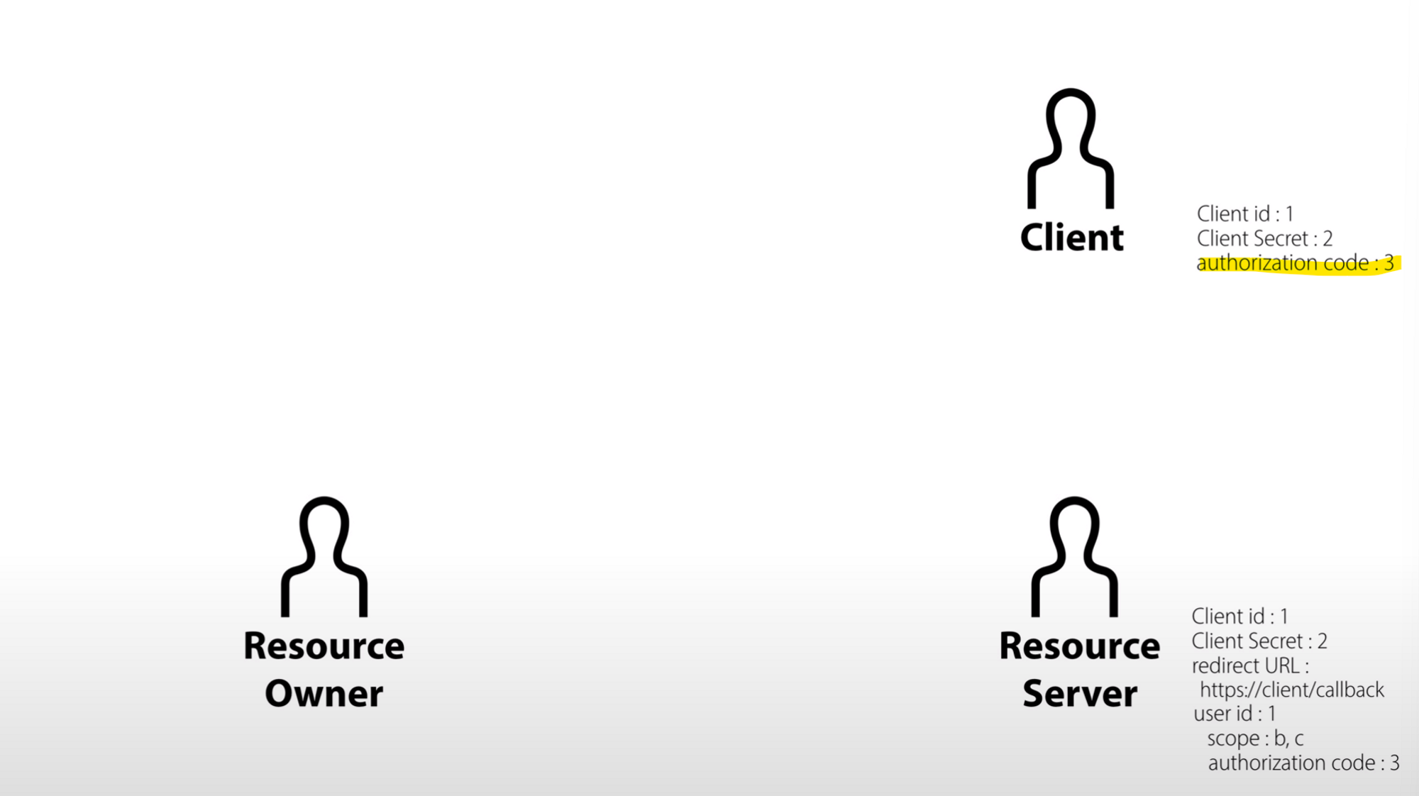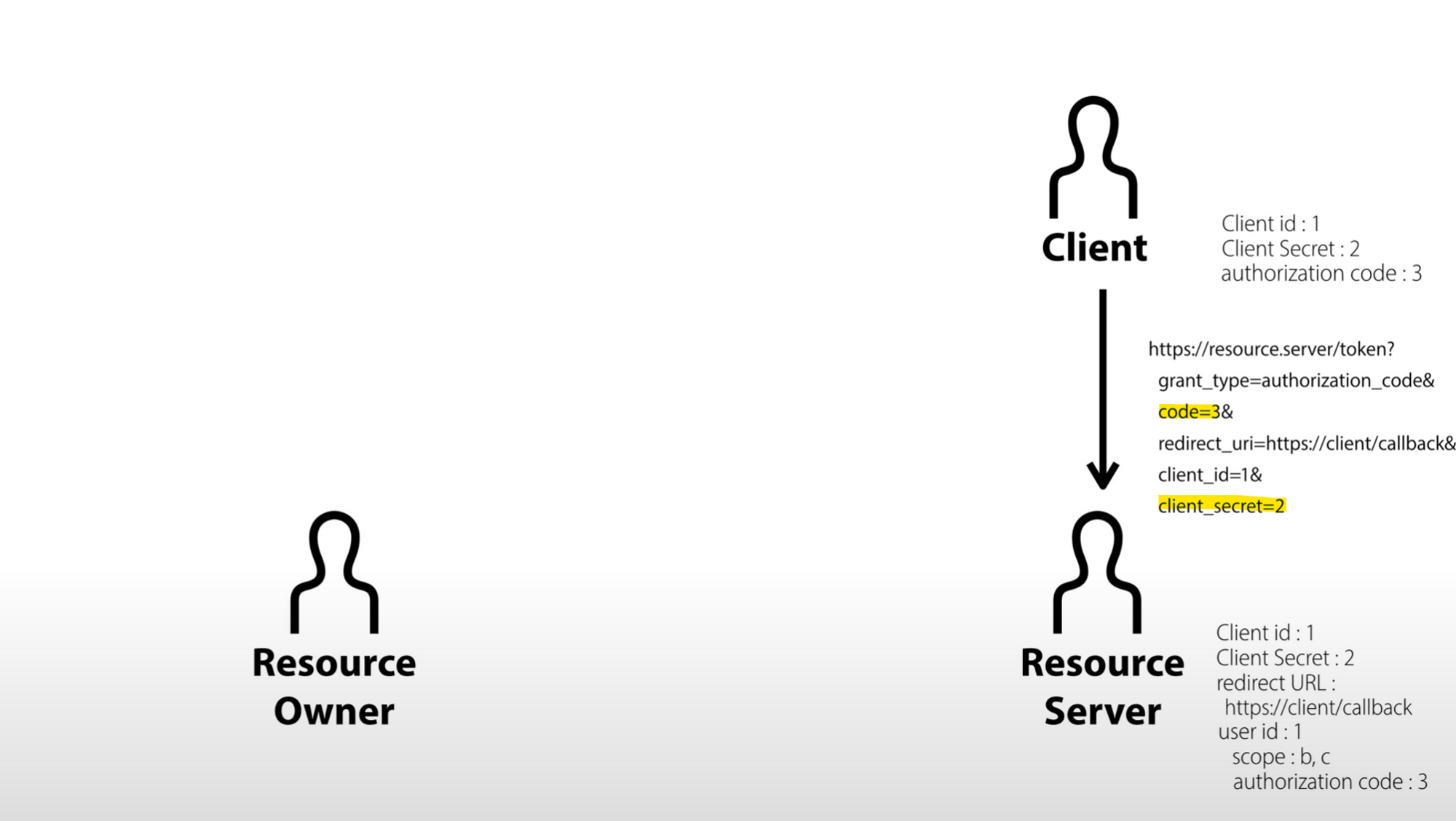 - resource server는 client가 보낸 client_id, client_secret, redirect_uri, authorization_code가 완전히 일치하는지 확인한다.