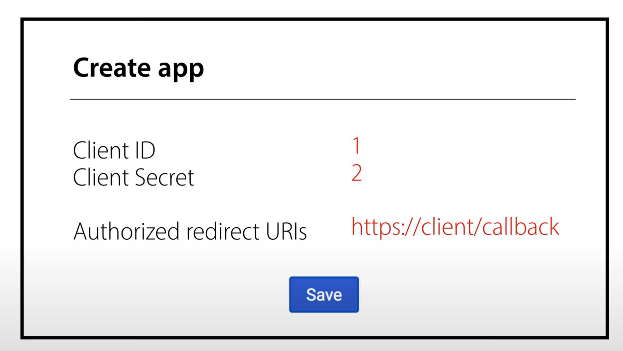 Client ID: 우리가 만들고 있는 어플리케이션을 식별하는 식별자.Client Secret: Client ID에 대한 비밀번호.Authorized redirect URIs: Resource Server가 권한을 부여하는 과정에서 Authorized code를 이 주소로 전달해준다. Resource Server는 이 주소 말고 다른 곳에서 요청하면 요청을 무시한다.- Client ID는 외부에 노출 가능. 하지만 Client Secret은 절대로 외부에 노출되면 안된다.