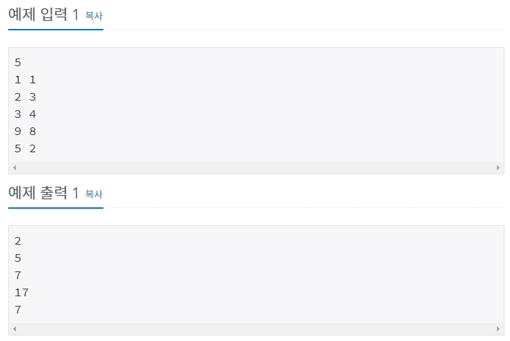 출처 - https://www.acmicpc.net/problem/10950