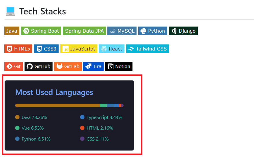 ๐จ๐ป Most Used Languages ์นด๋ ๋ง๋ค๊ธฐ