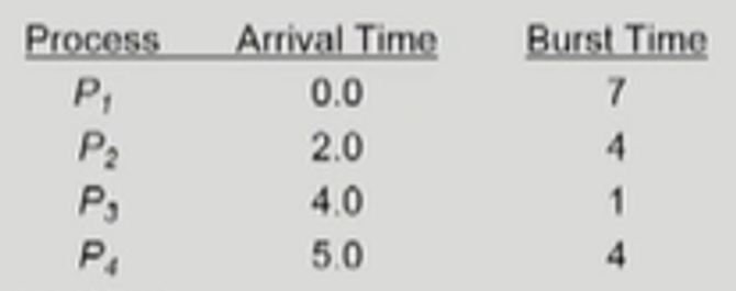주어진 프로세스들에 대해 minimum average waiting time을 보장
