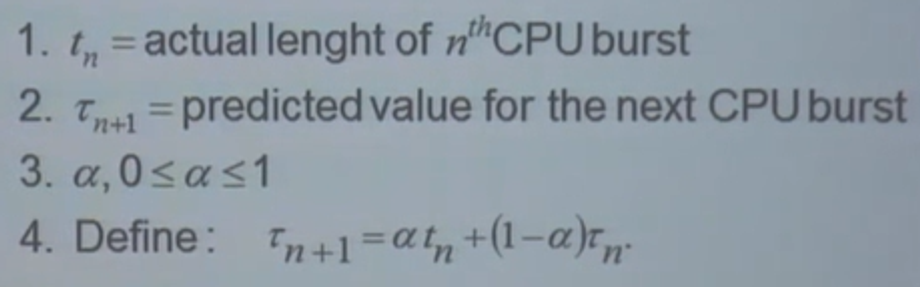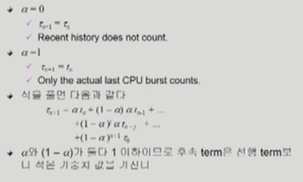 과거의 CPU burst time을 이용해서 추정 (exponential averaging)