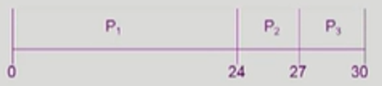 Waiting time for $P_{1} = 0$, $P_{2} = 24$, $P_{3} = 27$