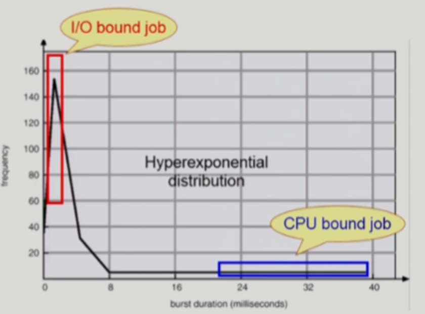 I/O bound job은 주로 interactive job(사람과 상호작용하는 작업). CPU bound job이 CPU를 너무 오래 사용하게 되면 I/O bound job이 CPU를 사용하지 못하게 되고, 사용자가 답답함을 느낄 수 있다.
