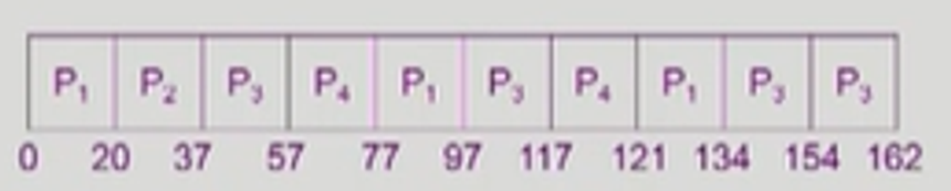 각 프로세스는 동일한 크기의 할당 시간(time quantum)을 가짐 (일반적으로 10-100 milliseconds)